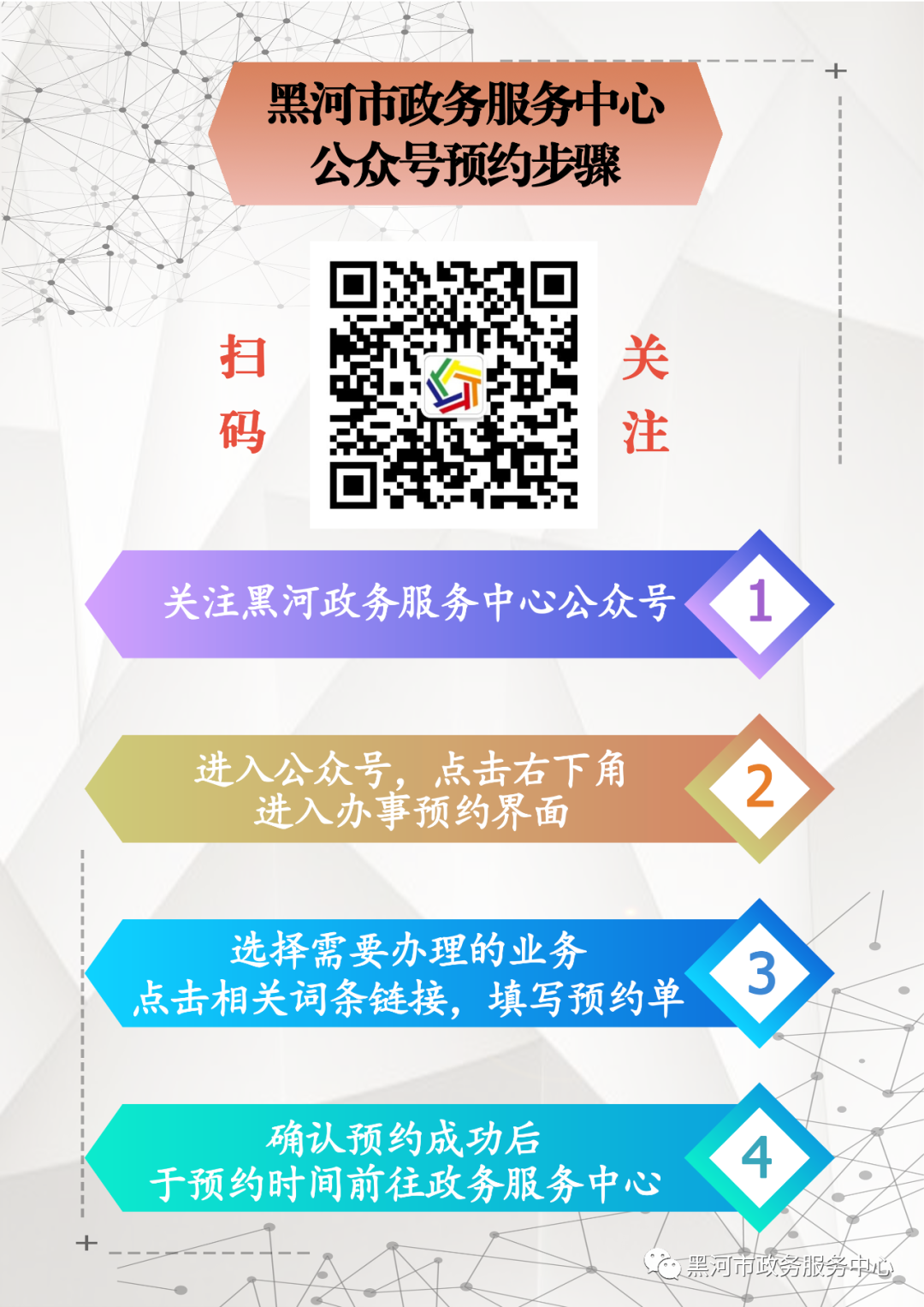 黑河市政務服務中心後續防控措施將根據疫情防控形勢進行相應調整,請您隨時關注公眾號。