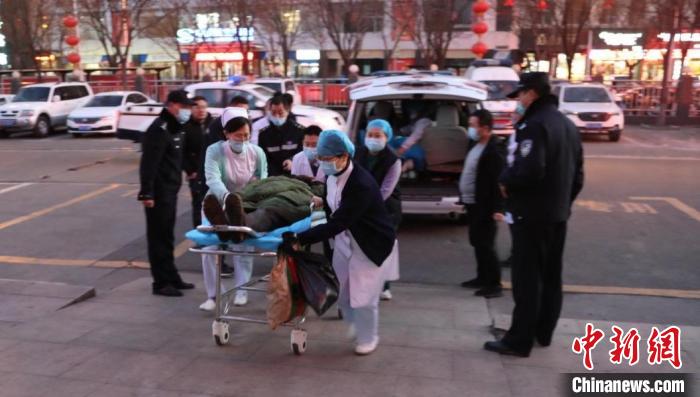 醫護人員將傷員轉送至孝義市人民醫院治療。 趙永峯 攝