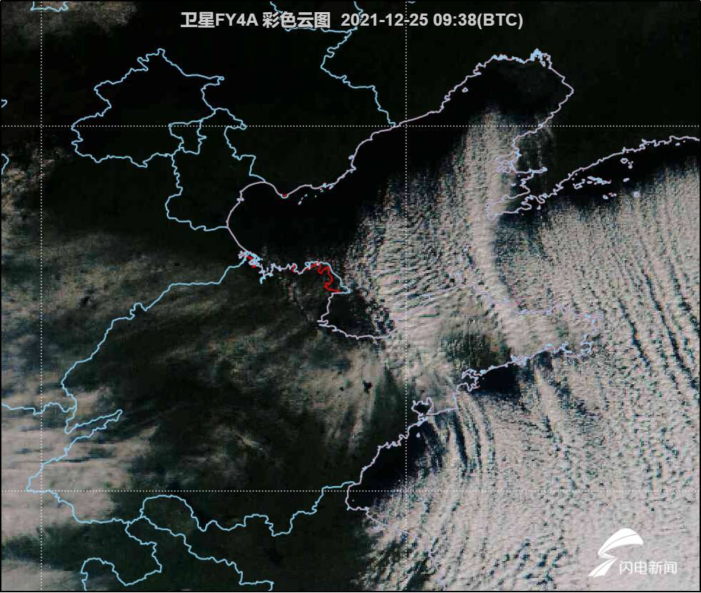 2021年12月25日9時38分風雲4A衞星雲圖(白色帶狀為降雪區)