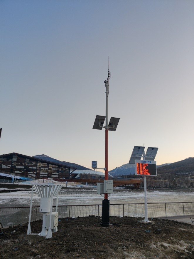 據悉,該氣象站位於頒獎廣場內,將見證北京冬奧會和冬殘奧會金牌的頒出,為張家口賽區相關活動氣象服務保障工作提供有力支持。温度、濕度、氣壓、風速、風向和降水量等觀測數據,可即時顯示在氣象站外接顯示屏上,並上傳至中心站。為了提升數據精度,降水觀測採用目前較為先進的稱重式降水傳感器,可以實現對雨、雨夾雪、雪等不同相態降水的測量。