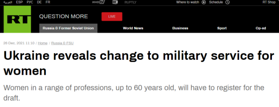 關於烏克蘭徵女兵,今日俄羅斯報道中稱,2018年10月,烏克蘭通過了一項關於武裝部隊中性別平等的法律,規定在符合有關法律的前提下,以相同標準分配男性和女性在軍隊中負責的職責。而就在今年7月,有照片顯示,在為烏克蘭脱離蘇聯獨立30週年準備時,一隊女兵穿着高跟鞋踢正步,有意見指責這種服裝有失身份,但烏克蘭國防部宣稱,女兵穿上這種制服會顯得“美麗而強壯”。