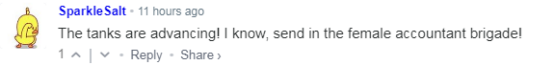 還有人諷刺稱:“坦克正在推進!收到,派女會計師旅過來!”↓