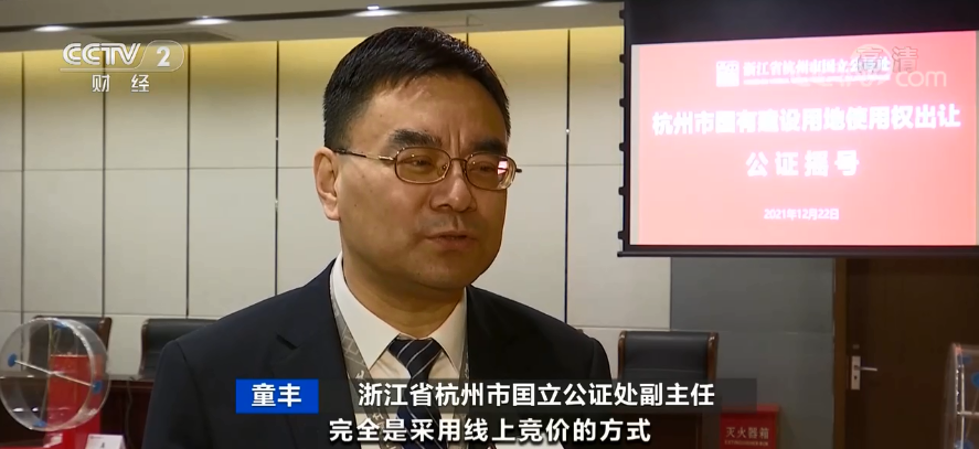 浙江省杭州市國立公證處副主任童豐: 原來杭州的土地出讓完全是採用線上競價的方式,這次是增加了線下搖號的環節。這次進入搖號的一共有24宗地,有幾十家開發商參加,最多的一宗地參加的開發商一共有24家 ,所以競爭還是比較激烈的。