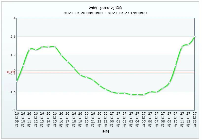 上海也不例外。申城從昨天(12月26日)19時開始,氣温就一直低於0℃。今天早晨氣温創下新低,市區徐家彙站零下1.9℃,郊區普遍在零下4℃至零下2℃。