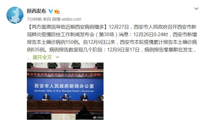 【兩方面原因導致近期西安病例增多】12月27日,西安市人民政府召開西安市新冠肺炎疫情防控工作新聞發佈會(第38場)消息:12月26日0-24時,西安市新增報告本土確診病例150例。自12月9日以來,西安市本輪疫情累計報告本土確診病例635例。病例報告數呈現幾個階段:12月9日至17日,病例報告零星散在發生,每日報告數在個位數;12月18日-12月24日,每日病例報告數從13例增長到75例;最近兩天病例報告數維持在150例左右。#核酸篩查越紮實對整體防控越有利# #陝西疫情防控#
