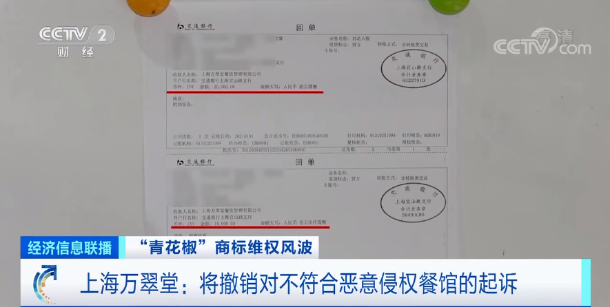 近期,央視財經報道了四川成都、遂寧、眉山等地,多家餐飲企業,因為店面招牌、菜譜菜碟帶有“青花椒”的字樣,被上海一家餐飲管理企業以青花椒商標侵權為由告上法庭。近日央視財經記者也採訪到了這家起訴的公司。