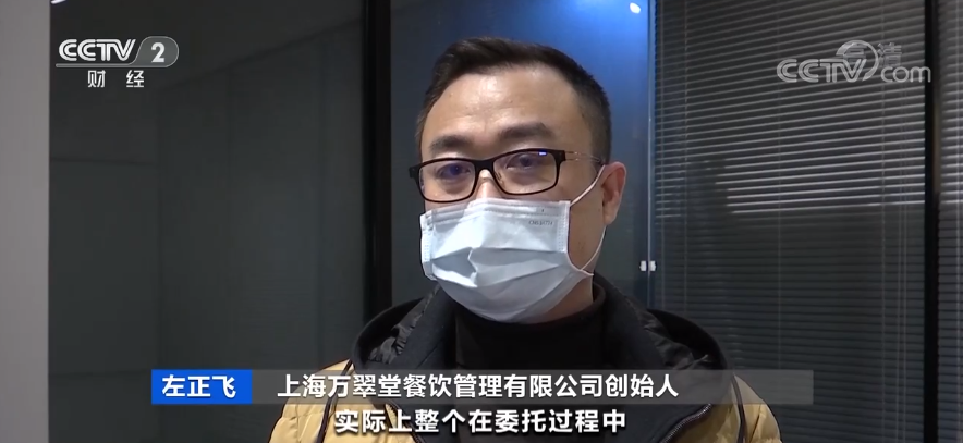 上海萬翠堂餐飲管理有限公司創始人左正飛: 實際上整個在委託過程中,第三方公司每一次給我們的,就是一張合同。維權的這家商標、門面長什麼樣子我們並不清楚。我們自己在管理上有漏洞,沒有嚴格去審核哪些屬於真正侵權、惡意侵權,哪些是不屬於侵權的,給大家帶來了很多麻煩。在這裏我也給大家賠個禮道個歉,我們也會跟第三方去交涉這個事情。