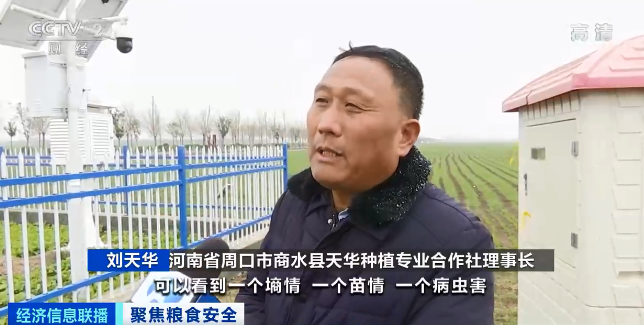 河南省周口市商水縣天華種植專業合作社理事長 劉天華: 在任何地方打開手機,可以看到墒情、苗情、病蟲害,管理上更精準、更有效。通過高標準農田的打造,智能化的運用,比以前能節水45%。