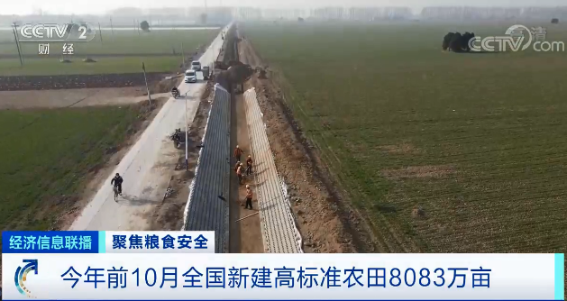 在商丘市民權縣白雲寺鎮,當地正在利用冬季水利施工的黃金季節,按照畝均1500元、核心區每畝3000元標準打造高效節水的高標準農田,今年河南全省共完成高標準農田建設任務750萬畝,明年春季灌溉就可以投入使用。從全國來看,今年1-10月,全國新建高標準農田8083萬畝,完成高效節水灌溉2192萬畝,為完成2021年建設一億畝目標任務打下了堅實基礎。