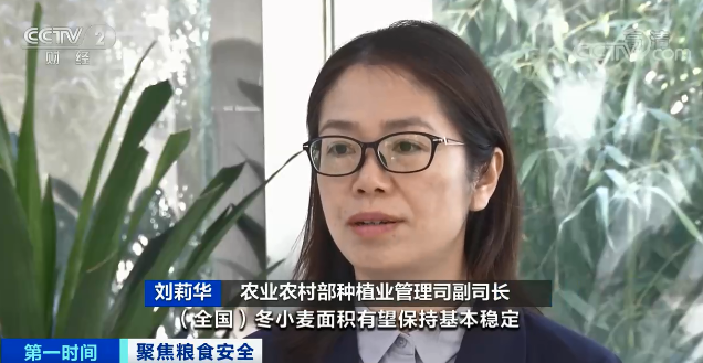 農業農村部種植業管理司副司長 劉莉華: 全國冬小麥面積有望保持基本穩定,關鍵是要抓好田管,確保小麥安全越冬,只要各項措施跟得上,奪取夏糧豐收是有基礎的。