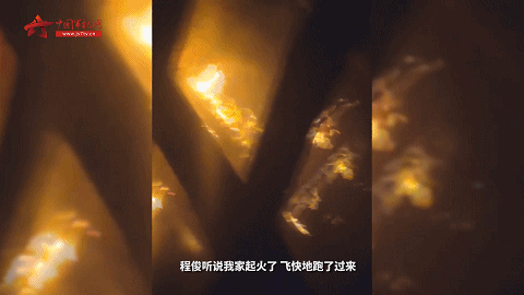此時,鄰居家火光一片、濃煙沖天