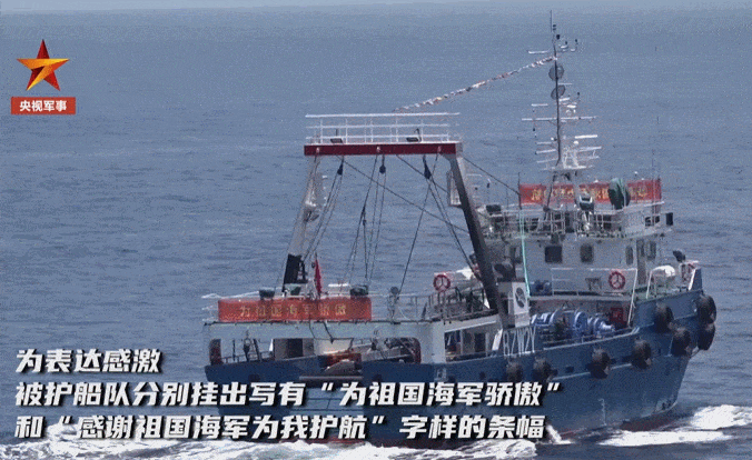 掛出寫有*“感謝祖國海軍為我護航”*