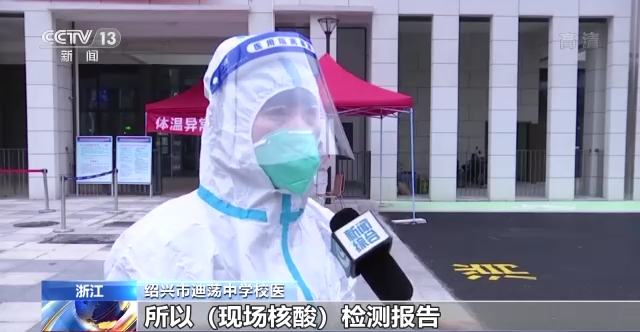 *紹興市迪蕩中學校醫:*因為特殊時期,所以(現場核酸)檢測報告在八點半之前都能出結果。