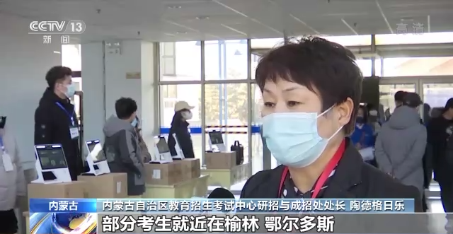 *內蒙古自治區教育招生考試中心研招與成招處處長 陶德格日樂:*報考點選擇西安的,這部分考生大概有10個孩子,部分考生就近在榆林、鄂爾多斯、包頭還有巴彥淖爾參加了考試。