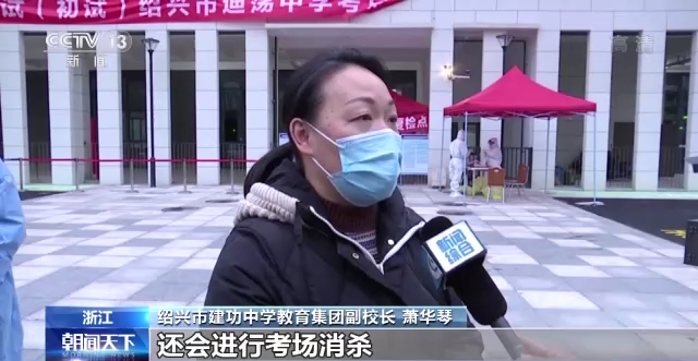 *紹興市建功中學教育集團副校長 蕭華琴:*考點裏面設置了2個通道,1個通道專門給考生,1個通道專門給考務工作人員。實行分流進考場,等每場考試結束,還會進行考場消殺。