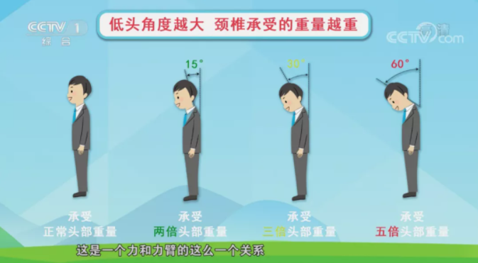 低頭角度越大,頸椎承受的重量越重