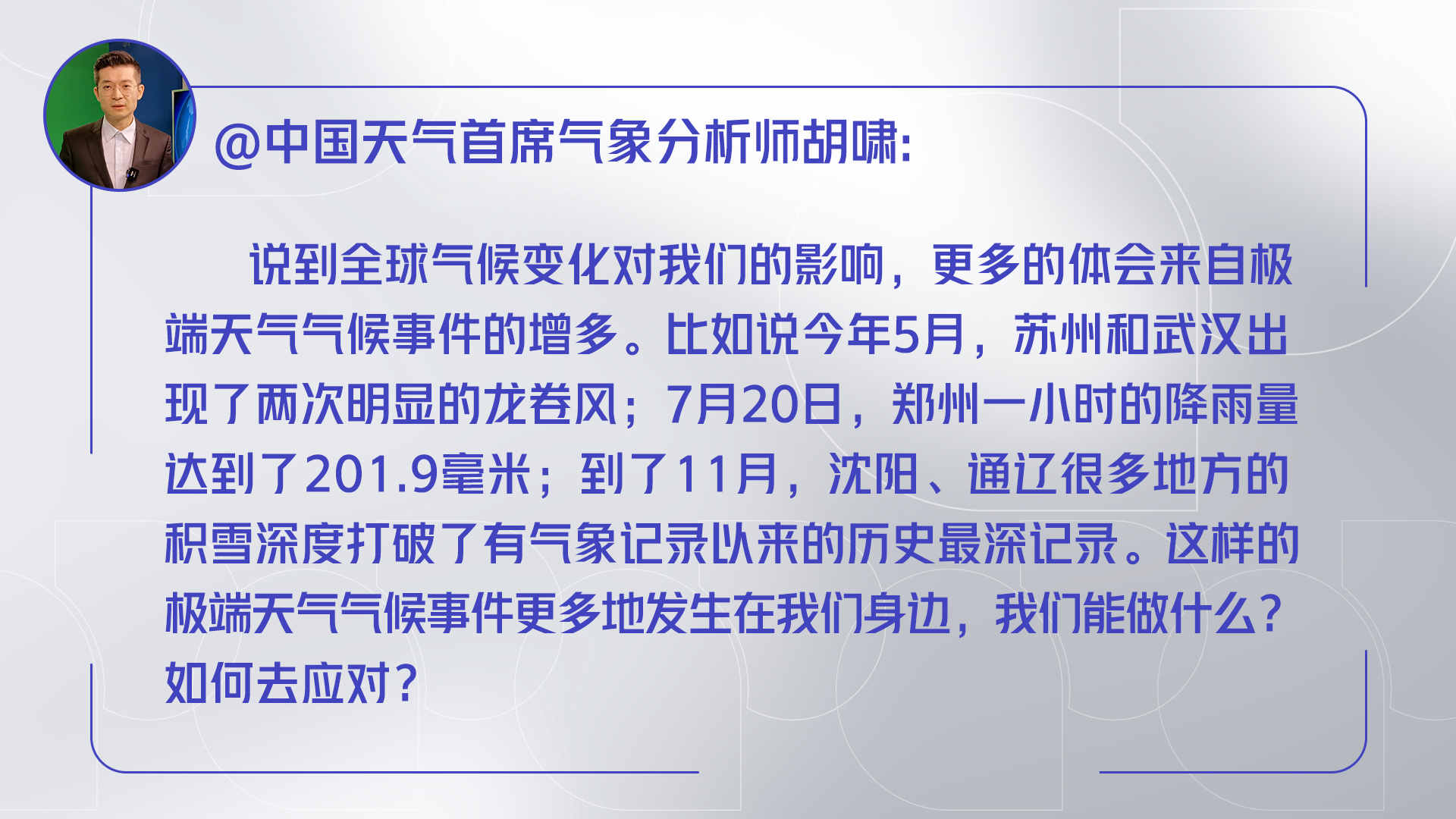 *徐華清:*無論是從觀測事實還是模擬數據來看,氣候變化已經發生了,而且變暖的趨勢越來越明顯,現在已經上升到氣候風險、氣候危機,這已經成為國際共識。