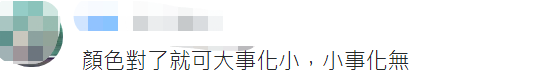 還有網友諷刺:“顏色對了就可大事化小,小事化無。”↓