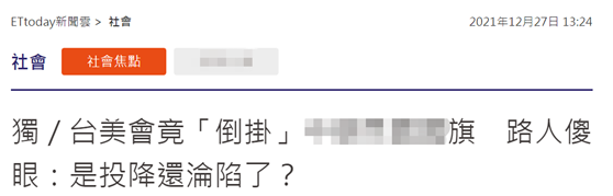 台媒:台灣一“重要單位”今倒掛旗幟,民眾:是投降還是“淪陷”了?