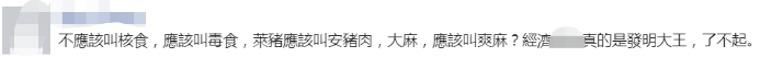還有不少網友諷刺道:“那叫全名,‘核食品’”、“核污染食品”。↓