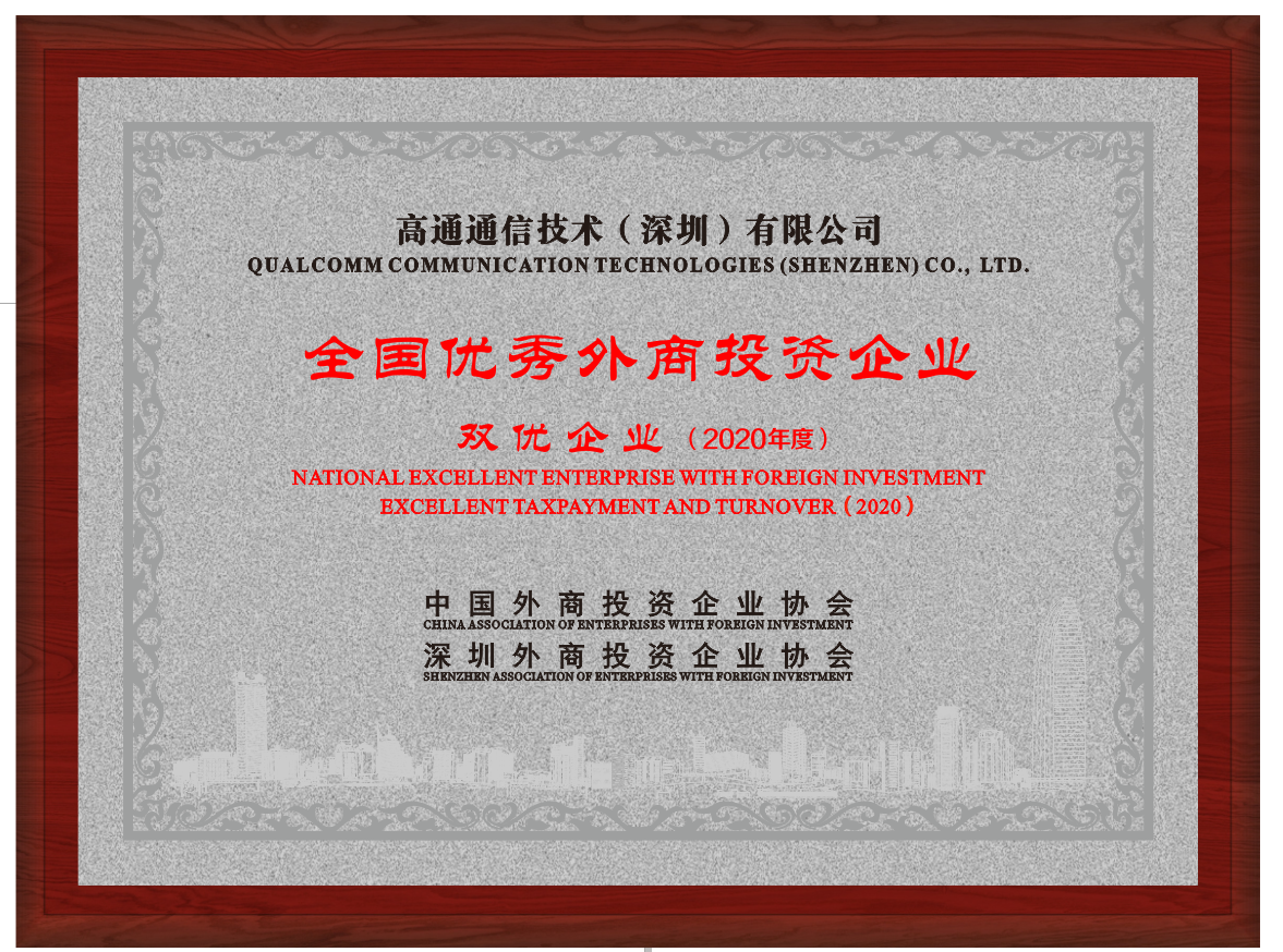 高通通信技術(深圳)有限公司憑藉良好的經營,對深圳市發展的積極參與、做出的貢獻,以及與中國產業夥伴的廣泛合作和取得的豐碩成果,獲評“全國(深圳)優秀外商投資企業-雙優企業(2020年度)”稱號。這是高通公司連續第二年獲此殊榮。