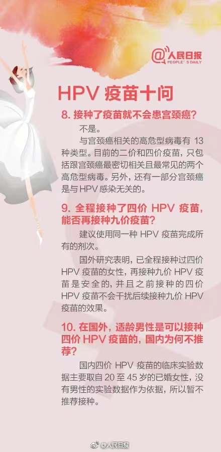 有專家指出,接種任何一種HPV疫苗均可讓這些女生在未來一生中患宮頸癌的概率顯著降低。“提倡應打早打、應打盡打,現在有什麼苗就先打什麼苗,早打早獲益,不要因為要等九價而不去打(二價疫苗)。”