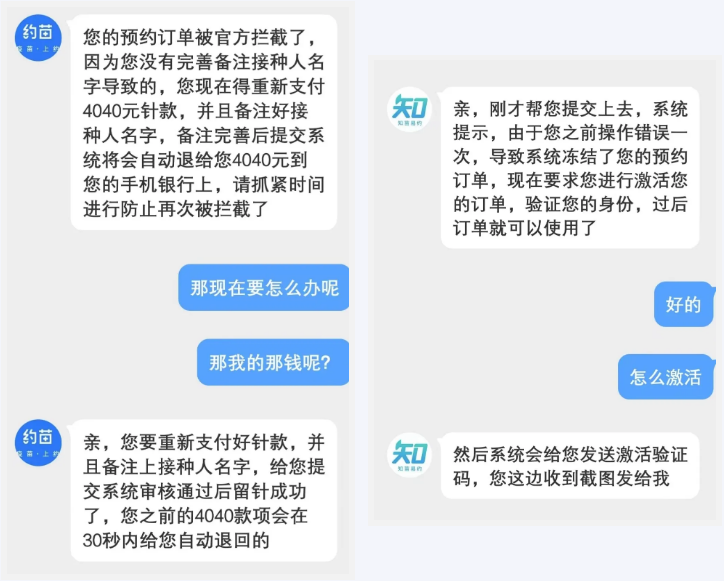 ①網上“代搶”“代預約”: “騙子”會通過微博、小紅書、微信、百度貼吧等平台,發佈“代搶”“代預約”九價HPV疫苗的虛假消息,自稱有醫院預約名額,等待受害人主動聯繫。