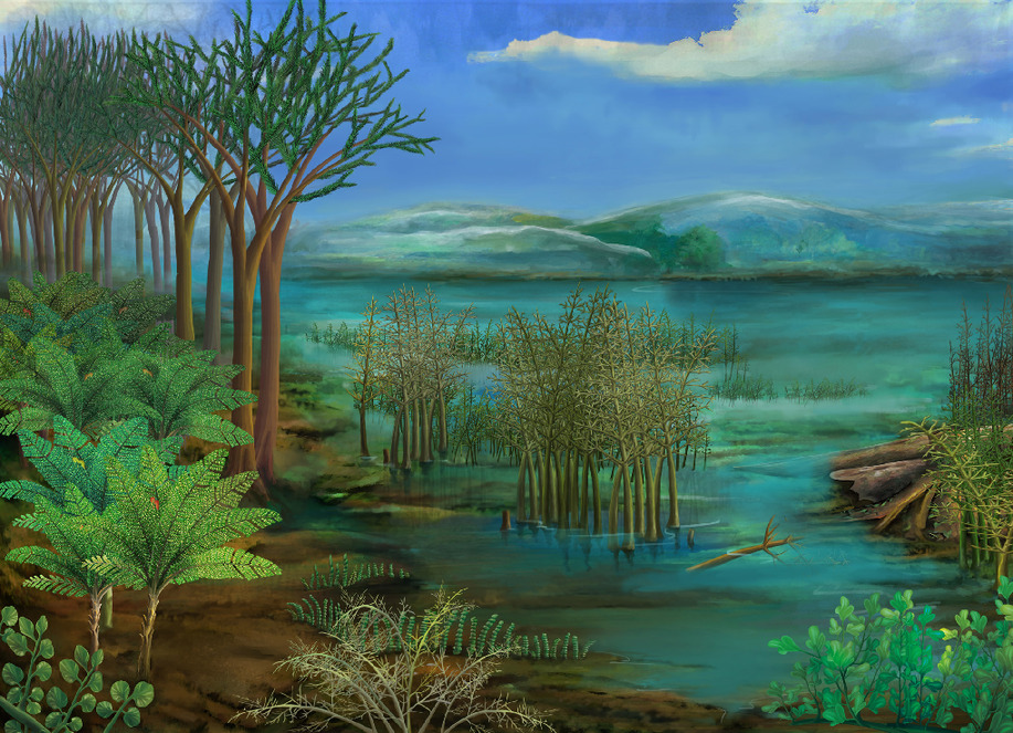 3.5億年前遠古植物景觀圖。中科院南古所供圖