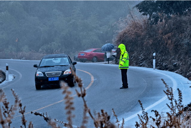 鄉道偉江鄉石鼓坳路段,樂江鄉地靈界路段道路出現結冰的情況,目前已聯繫當地政府設立警示標牌,交警已對以上路段實施交通管制。