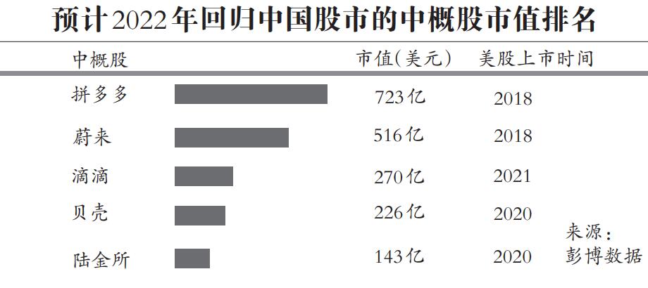 “2022年中概股將迎來一波‘迴歸’”。美國雅虎財經網站26日報道稱,中國內地和香港的交易所有望迎來以滴滴、拼多多等企業領銜的上市潮。一方面,美國上市風險加大,符合要求的中概股紛紛謀求迴歸香港上市。另一方面,中國證監會近日公佈企業境外上市新規,規範中國企業海外上市。在2021年全球以及A股首次公開募股(IPO)募資規模都將創下新高的背景下,2022年中企境外IPO有望迎來嶄新局面。