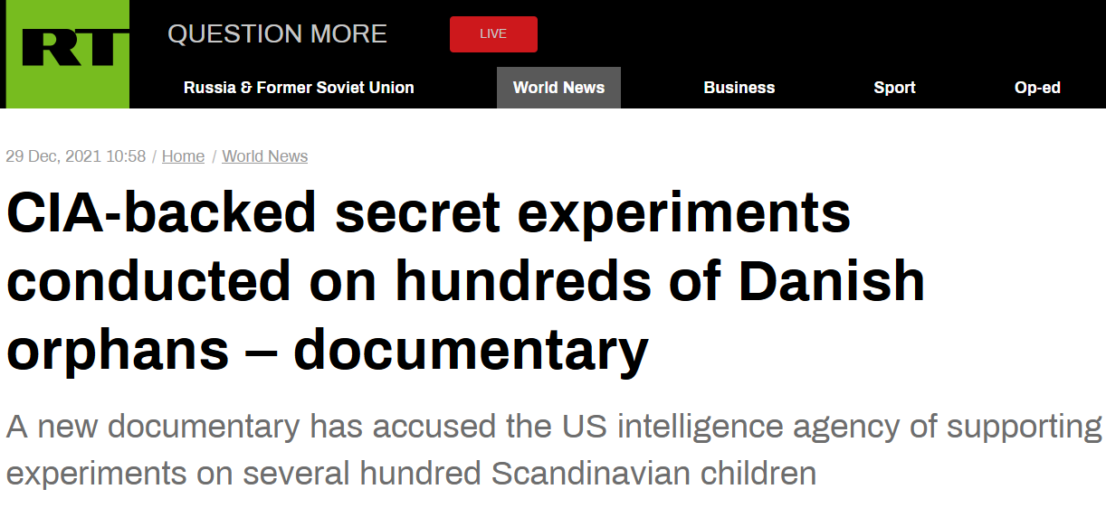 黑歷史被曝光?!俄媒:CIA曾涉嫌資助對數百名丹麥孤兒的秘密實驗
