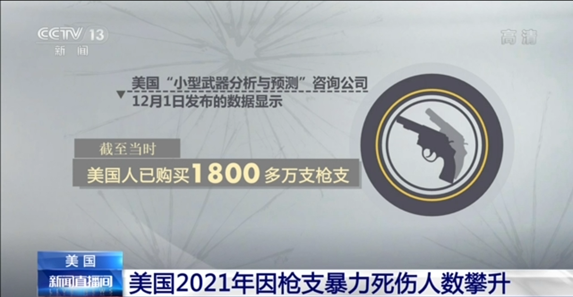 新冠肺炎疫情讓美國的社會和政治問題更加凸顯,暴力事件數量不斷上升。美國“槍支暴力檔案”彙總的數據顯示,2021年美國因槍支暴力事件死傷人數已經達到8年來最多。