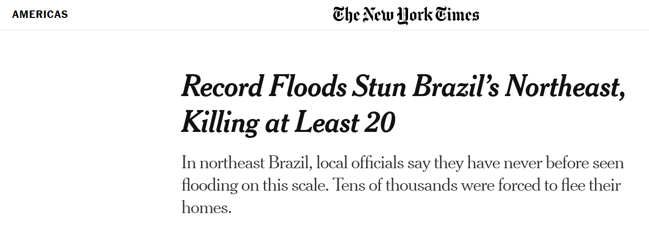 “有超過116個城市目前處於緊急狀態”,來自該州的國會議員阿森桑稱,“暴雨摧毀了我們州的道路、橋樑和房屋” 。巴伊亞州長科斯塔表示,洪水的規模是巴伊亞近代歷史上從未見過的,“真的很可怕,有那麼多的房屋和街道完全被水淹沒了。”