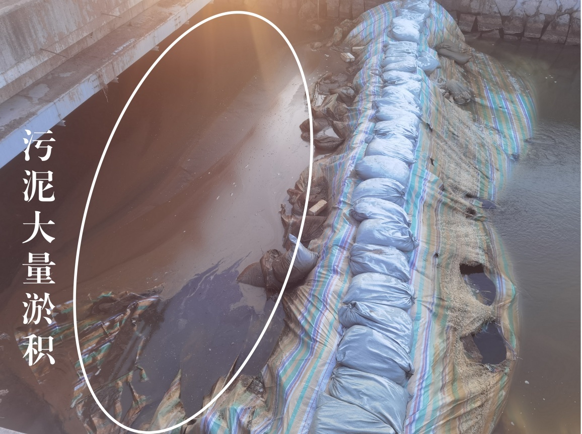 今年12月8日,督察組現場督察發現,何家溝上游臨時圍堰內污泥大量淤積。