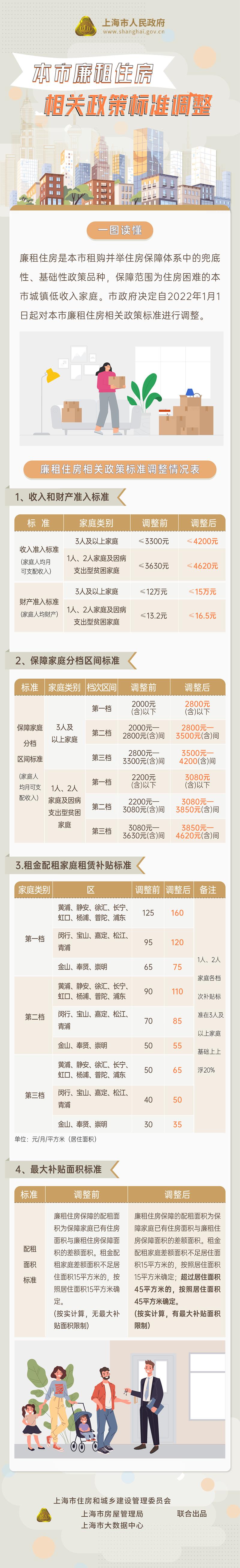 記者12月29日從上海市房管局獲悉,經研究,上海市政府決定對上海市廉租住房相關政策標準進行調整,進一步擴大廉租住房政策受益面、提高廉租住房保障水平。新政策標準將從2022年1月1日起實施。