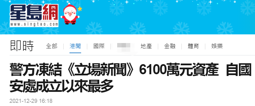 港媒:香港警方凍結“立場新聞”6100萬港元資產,系國安處成立以來最多