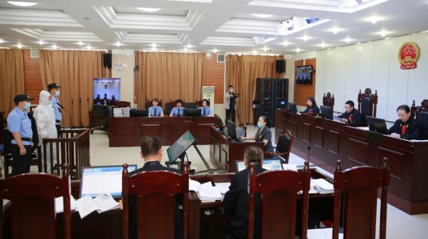 圖為2021年8月31日,徐力羣受賄、非法持有槍支案一審庭審現場。