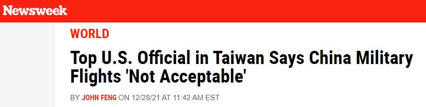 報道稱,被問及對所謂中國大陸軍機“不斷升級”的行動有何看法時,這位“美國在台協會”一把手馬上渲染説,美方認為這些“侵犯台灣領空”的行為會破壞地區穩定,也可能造成錯估情勢的風險。