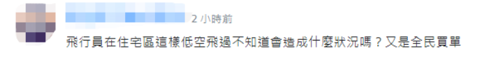 針對此事,有島內網友質疑,“在住宅區這樣低空飛過不知道會造成什麼狀況嗎?又是全民買單。”