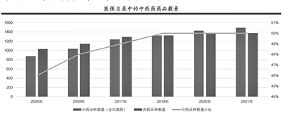 事實上,中藥產業一直是我國醫藥產業的重要組成部分。全球增長諮詢公司弗若斯特沙利文(簡稱“沙利文”)預測,到2022年,中國的中藥產業市場規模有望達到1.04萬億元。而另據公開數據,在我國曆年的醫保目錄中,中藥的數量增長較快,2019年版醫保目錄中1321箇中成藥,與西藥數量持平,2021年則為1374種。