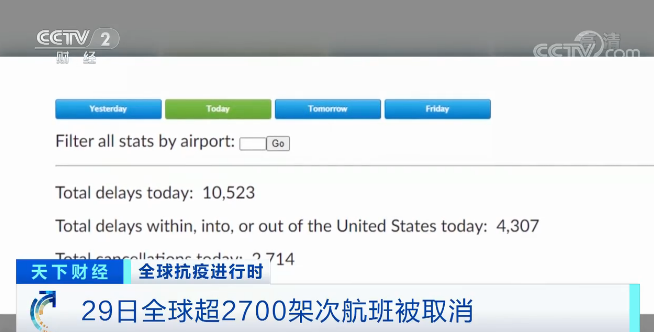 而截至北京時間今天早上6點15分,全球航空業在週三取消的航班次數達到2714次,延誤航班10523次,兩項數據中,美國航班都佔據較大比重。