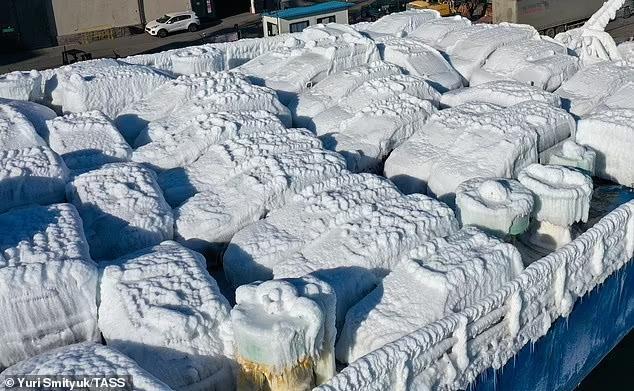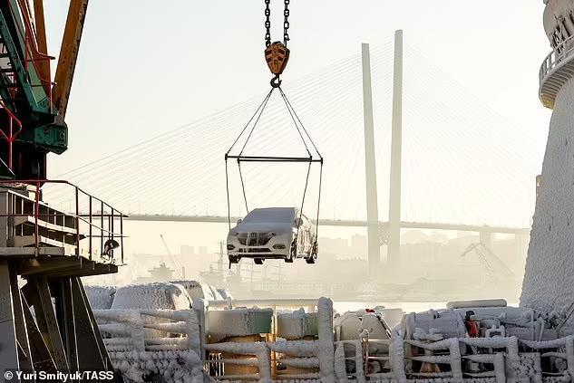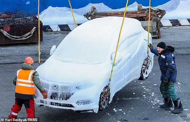 報道稱,由於天氣異常寒冷且多風,數十輛日本品牌的汽車在經由貨船運抵俄羅斯符拉迪沃斯托克的途中,車身被噴上了一層厚厚的冰凍海水。當地時間28日,俄符拉迪沃斯托克的氣温為零下19攝氏度,以致於不得不用起重機將這些結冰的車輛吊離甲板。據瞭解,有些車被厚達6英寸的冰覆蓋着。
