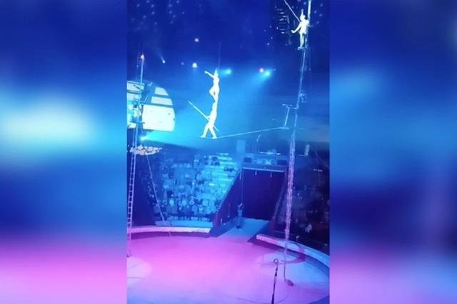 據《紐約郵報》27日報道,一段驚心動魄的視頻顯示,俄羅斯一名雜技演員在走鋼絲時突然失去平衡,從24英尺(約7.3米)高的地方摔了下來,而他的母親當時單腳站在他的頭頂上。