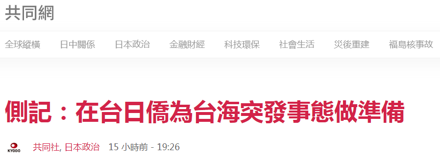 報道最後聲稱,在南部的台南市,當地日僑為應對“突發事態”等成立了民間非盈利團體(NPO)“台南市日本人協會”,旨在與民進黨當局及“交流協會”深化合作,收集和共享信息。“台南市日本人協會”理事長野崎孝男説:“不能因為日本政府説萬無一失就疏忽大意。集本地區之全力保護僑民,不能讓弱者被落下。”