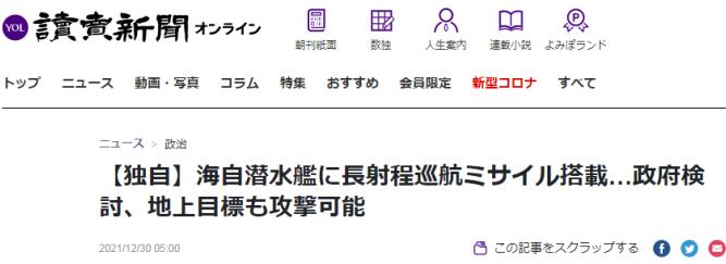報道中宣稱,日本自衞隊目前維持21艘潛艇服役的體系,“擁有優秀的續航能力和隱身性能,達到世界頂流水平。”報道還聲稱,日本首相岸田文雄計劃在2022年末修改“國家安全保障戰略”,計劃明確寫入擁有“對敵基地攻擊能力”,潛射導彈將成為有力的“反擊手段”之一。