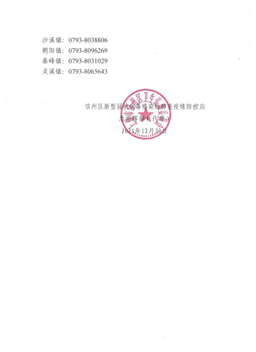 12月30日,上饒市信州區接外縣區協查信息,有外省新冠肺炎確診病例的密切接觸者在我區有活動軌跡。為了堵塞我區防控漏洞,提醒其他有共同活動軌跡人員落實防控措施,現將該名密接的活動軌跡通告如下: