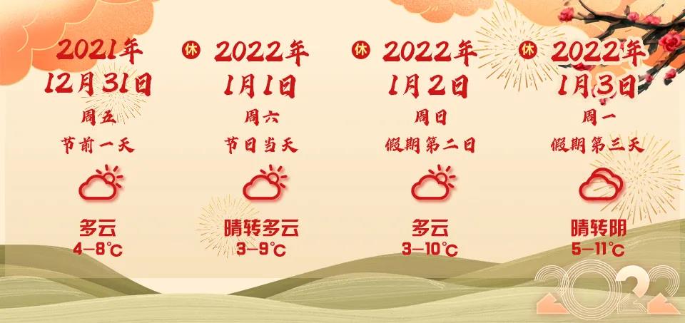 2022年元旦假期為2022年1月1日(星期六)至1月3日(星期一),放假3天,高速路不實行小客車免費通行政策。