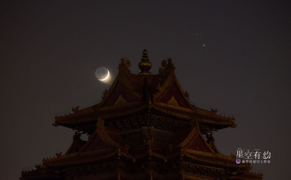 北京市天文愛好者鄭志2020年12月17日在故宮角樓拍攝的“土木伴月”。(本人供圖)
