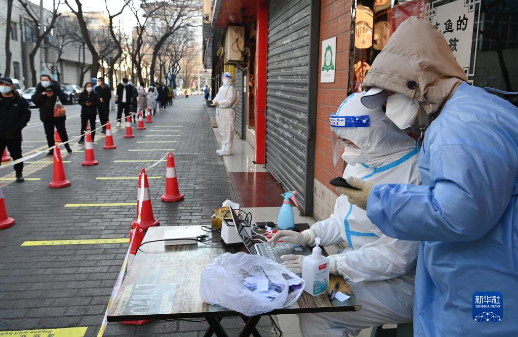 12月29日,市民在西安市皇城西路排隊進行核酸檢測。新華社記者 陶明 攝
