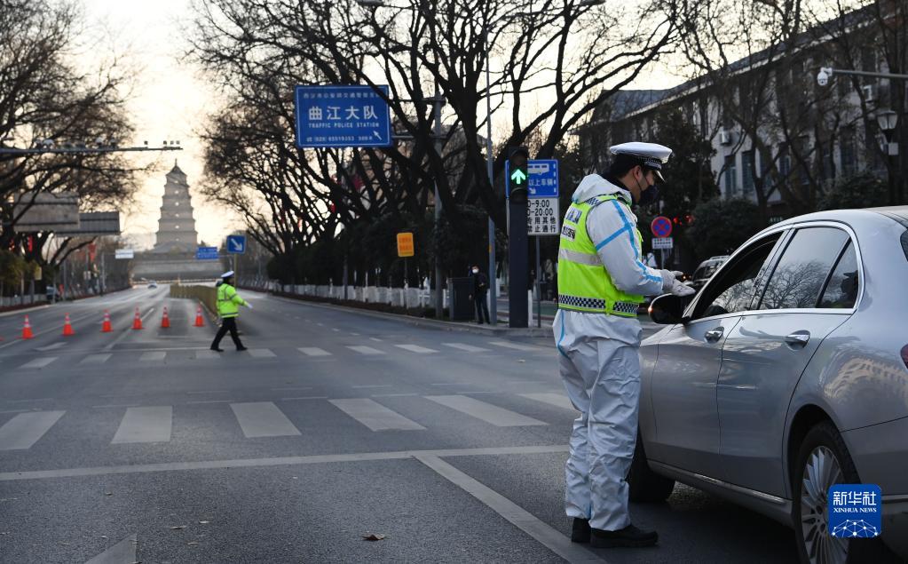 12月29日,民警在西安市雁塔北路執勤。新華社記者 陶明 攝